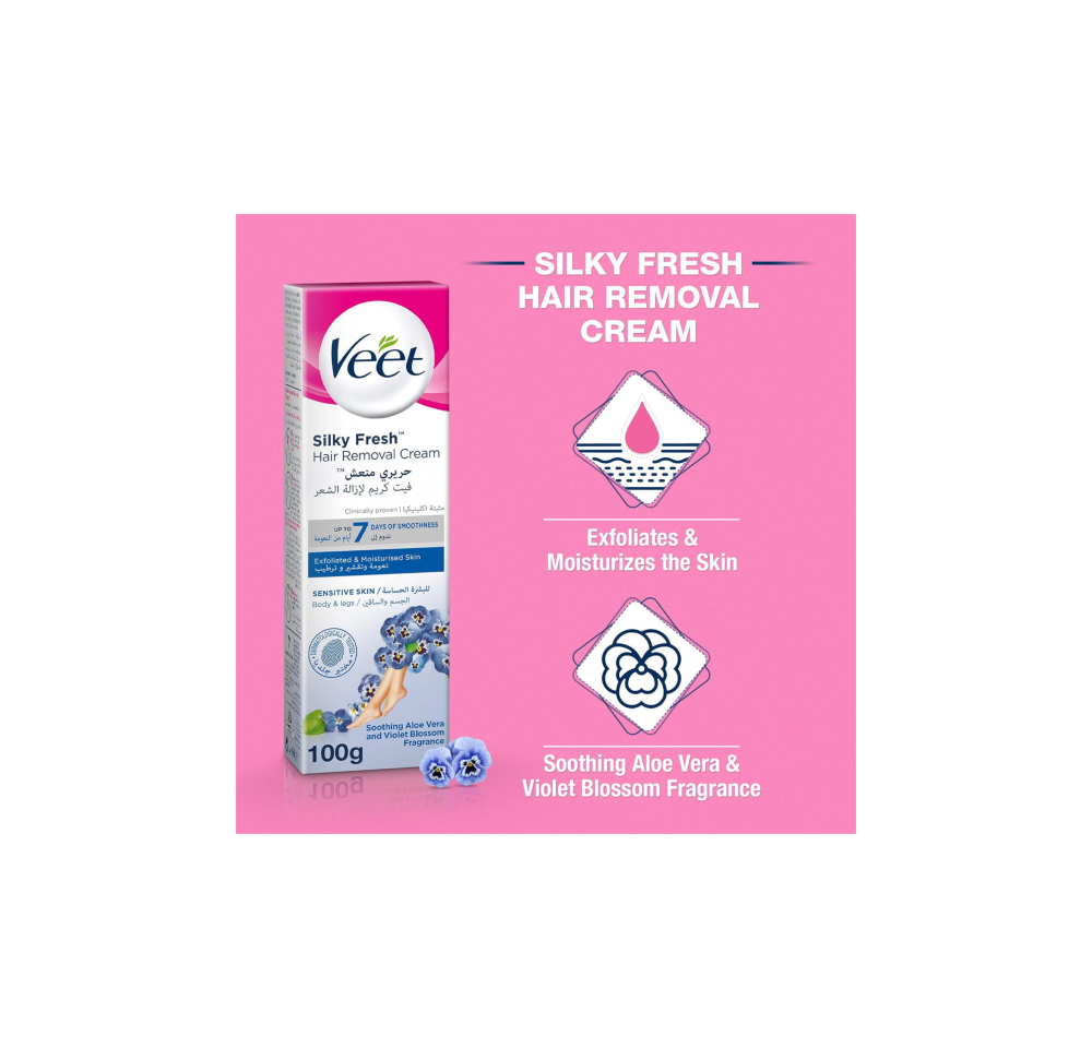 - يُعد الكريم منتجًا مبتكرًا يجمع بين فعالية إزالة الشعر والعناية بالبشرة. بفضل تقنية الحرير المنعش الجديدة، يمنحكِ شعورًا بالانتعاش ويُعطر بشرتك برائحة جميلة تدوم طوال اليوم.