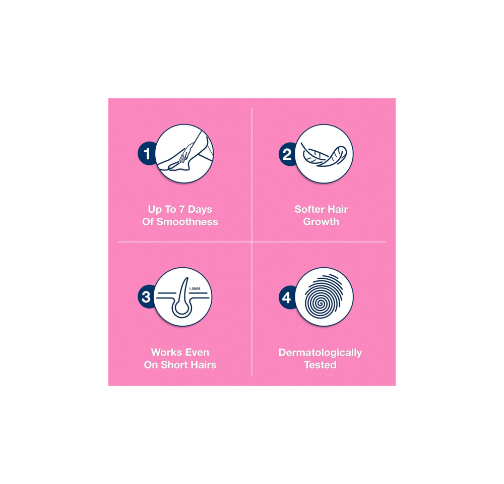 ستتمكنين من الاستمتاع ببشرة ناعمة وخالية من الشعر مع شعور بالانتعاش والراحة طوال الأسبوع.